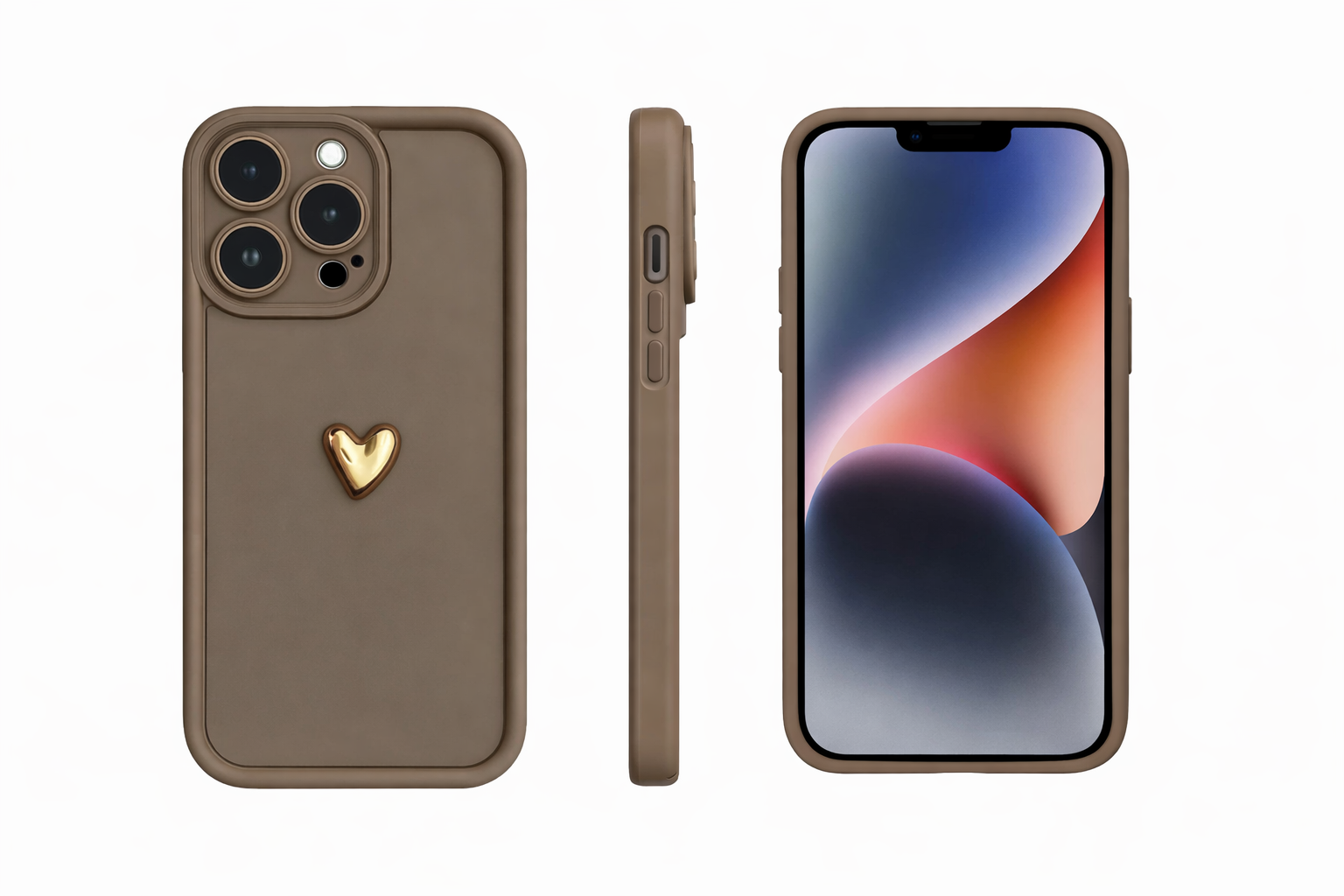 De Luxe SoftShield Heart Case combineert stijlvolle elegantie met hoogwaardige bescherming. Deze telefoonhoes heeft een mat, taupe-kleurig oppervlak dat een moderne, minimalistische look geeft. De opvallende gouden hart-accent in het midden zorgt voor een luxe uitstraling en een subtiele persoonlijke touch. Dankzij de verhoogde randen rond de camera en het scherm biedt de case optimale bescherming tegen krassen, vallen en stoten. Perfect voor iedereen die functionaliteit wil combineren met verfijnde esthetiek.